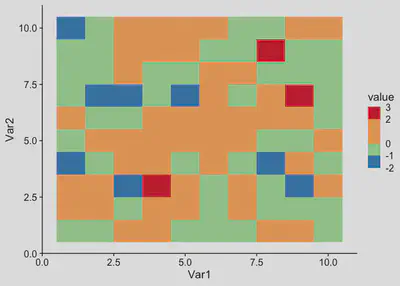 g1 = g + geom_raster(mapping = aes(fill = value)) # for raster plot, "fill" defines the color inside each rectangle