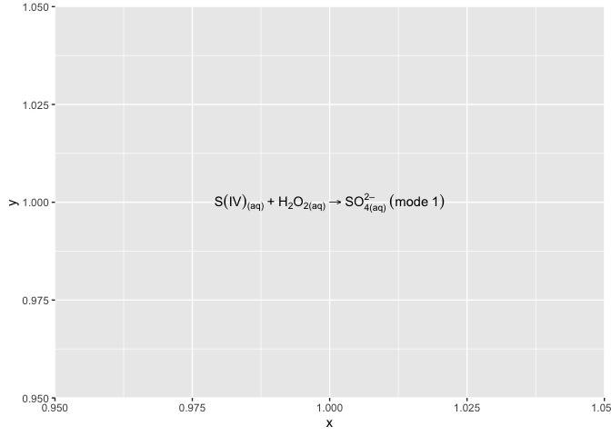g = g + geom_text(aes(x = 1, y = 1, label = 'S(IV)["(aq)"]~"+"~H[2]*O[2*"(aq)"] %->% SO[4*"(aq)"]^"2–"~(mode~1)'), parse = T)